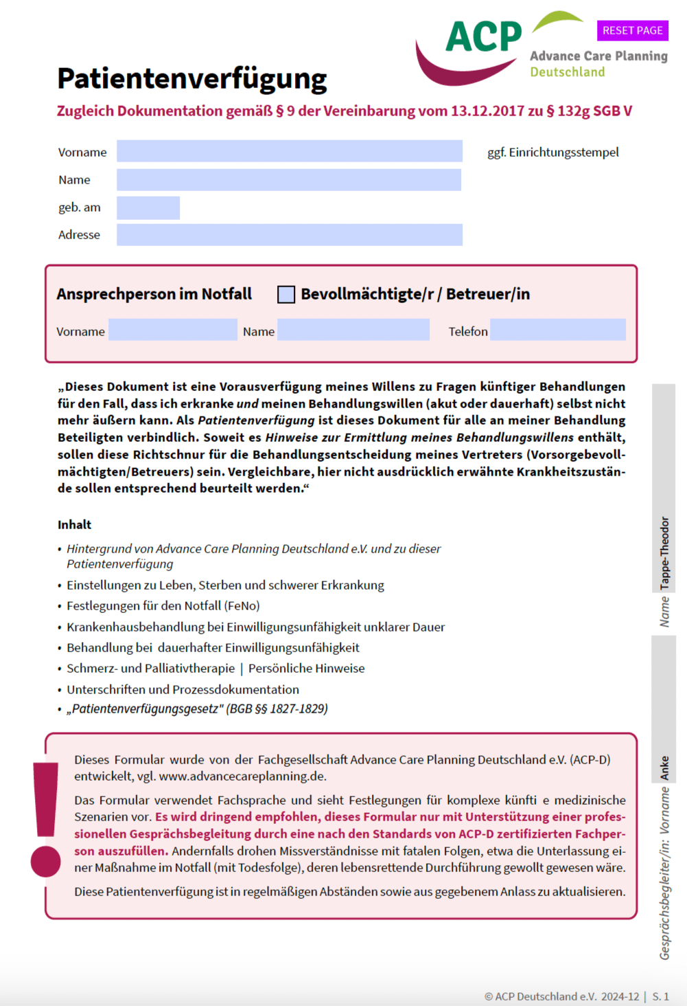 - und Angehörige oder Bevollmächtigte zu entlasten, indem sie wissen, was du dir wünschst
